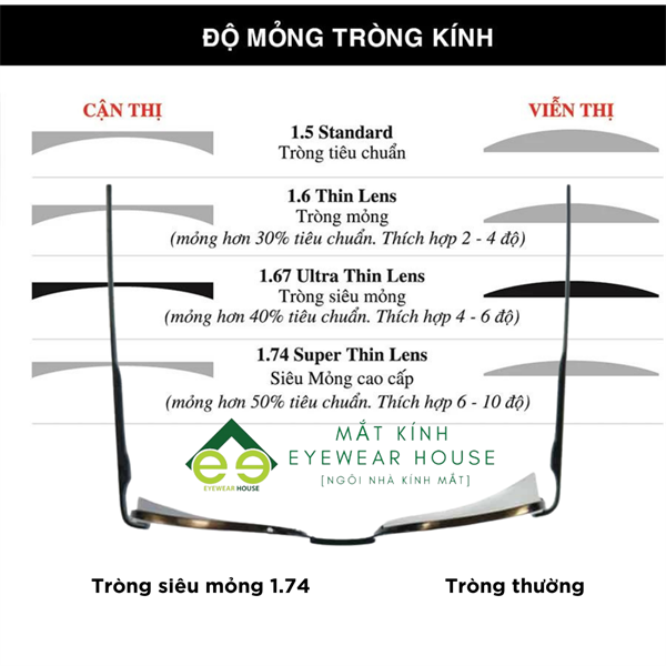Hàn Quốc 1.74 Chống Ánh sáng xanh, chống chói, chống UV, bám bụi, loang nước (Siêu mỏng)