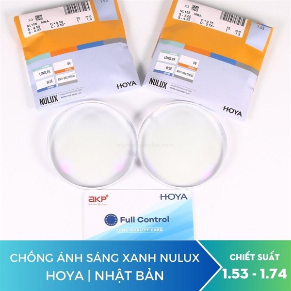 Hoya Nhật 1.67/1.74 HVLL Nulux Full Control - Ánh sáng xanh - Kháng khuẩn